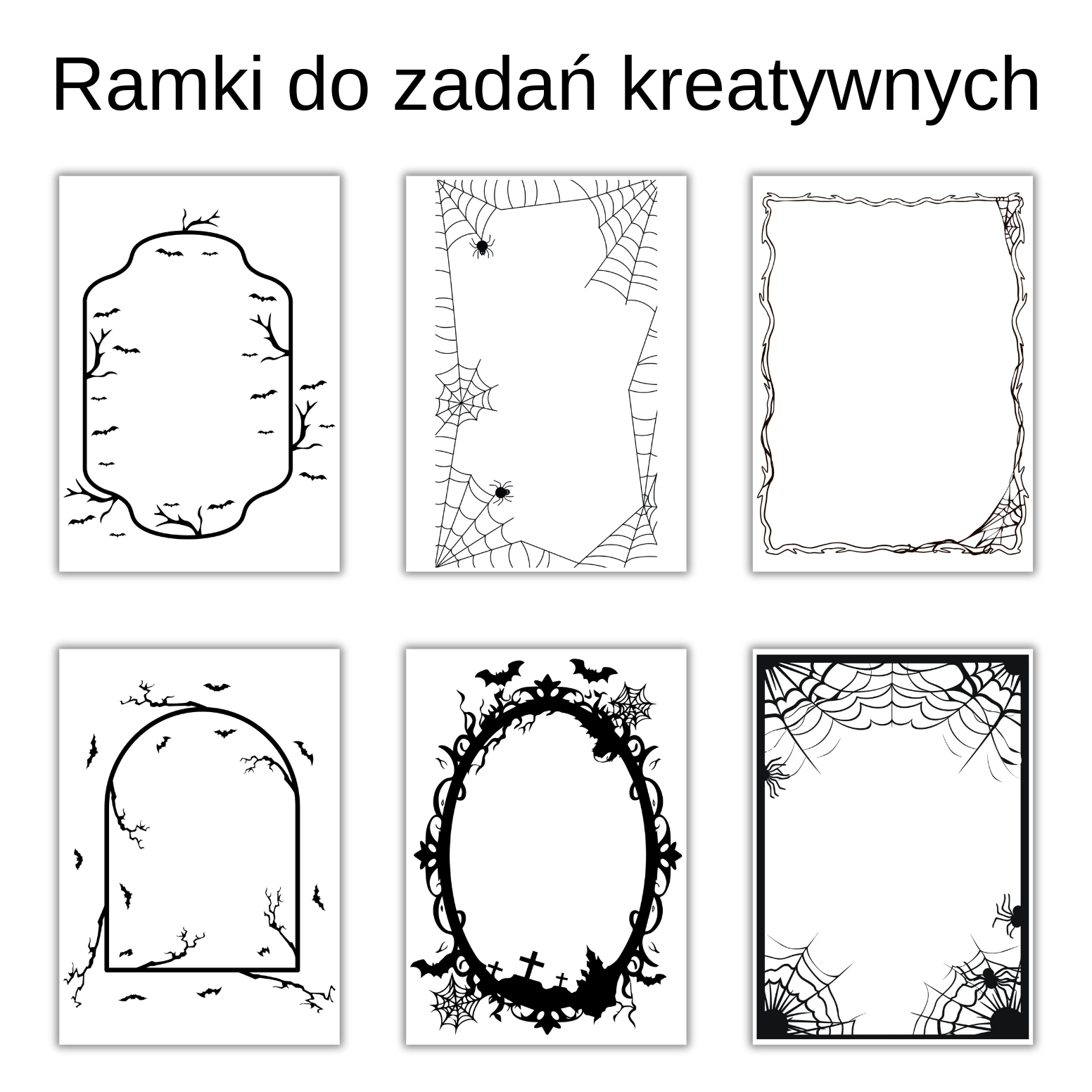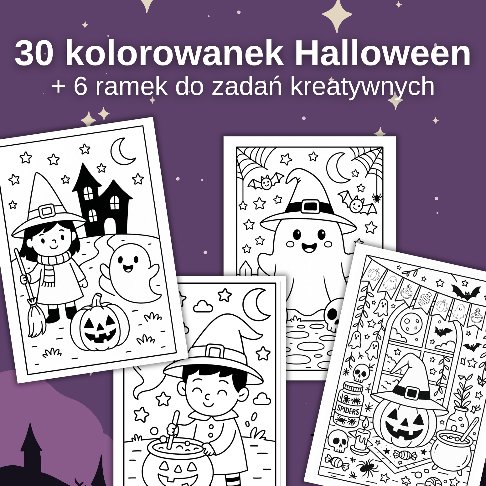 30 Kolorowanek Halloween + 6 Kreatywnych Ramek PDF do druku