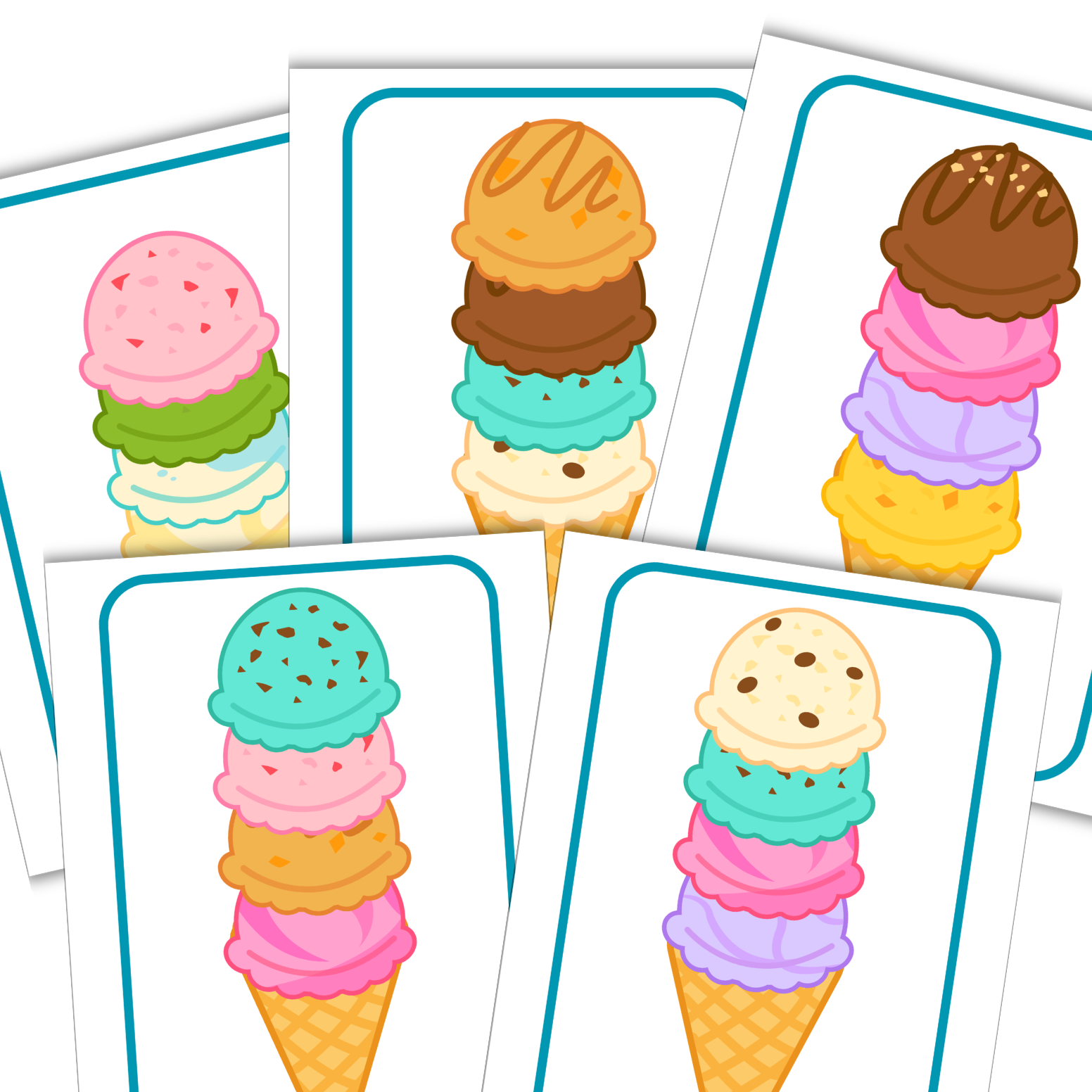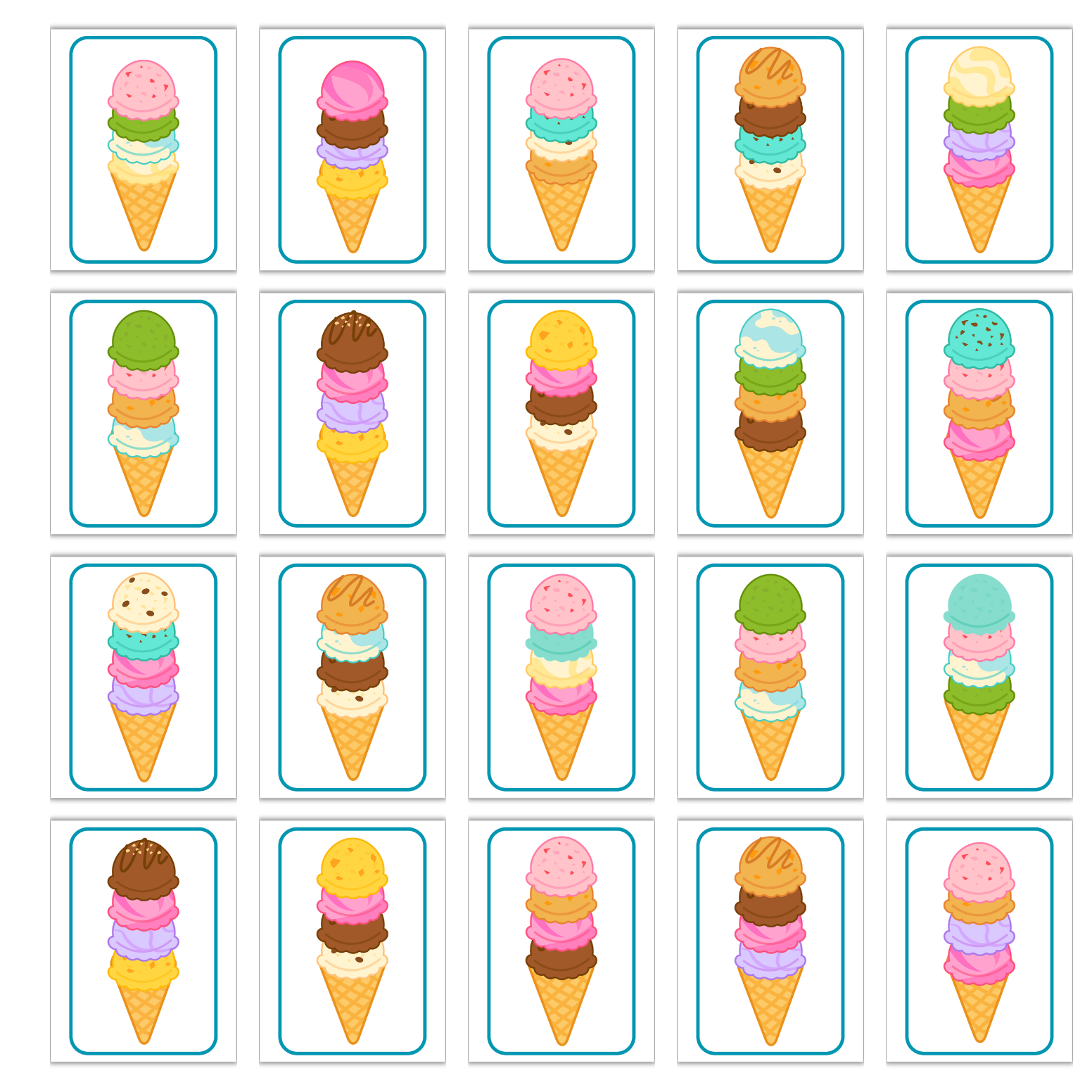 - 20 kart z kolorowymi wzorami lodów do odwzorowania