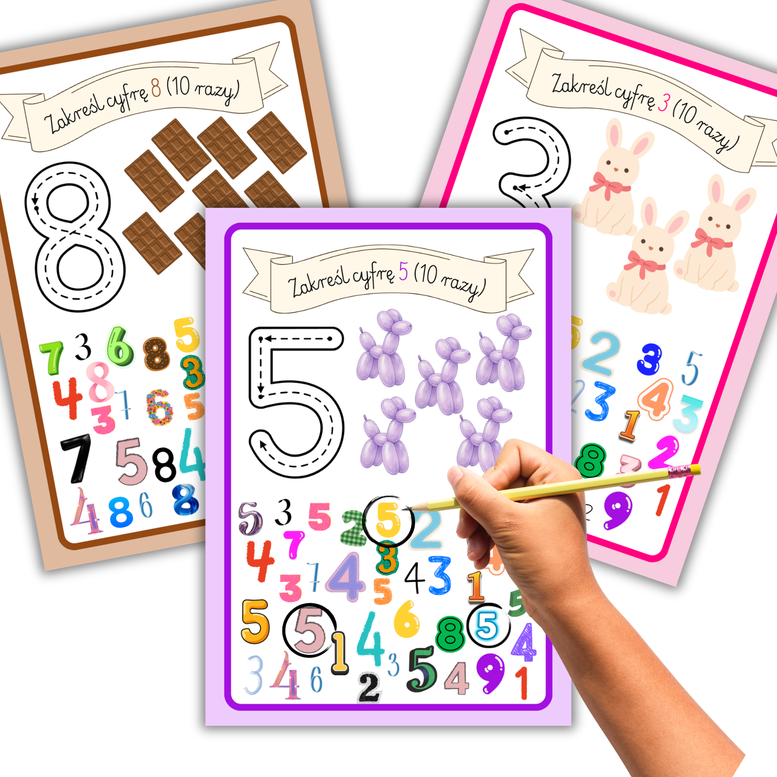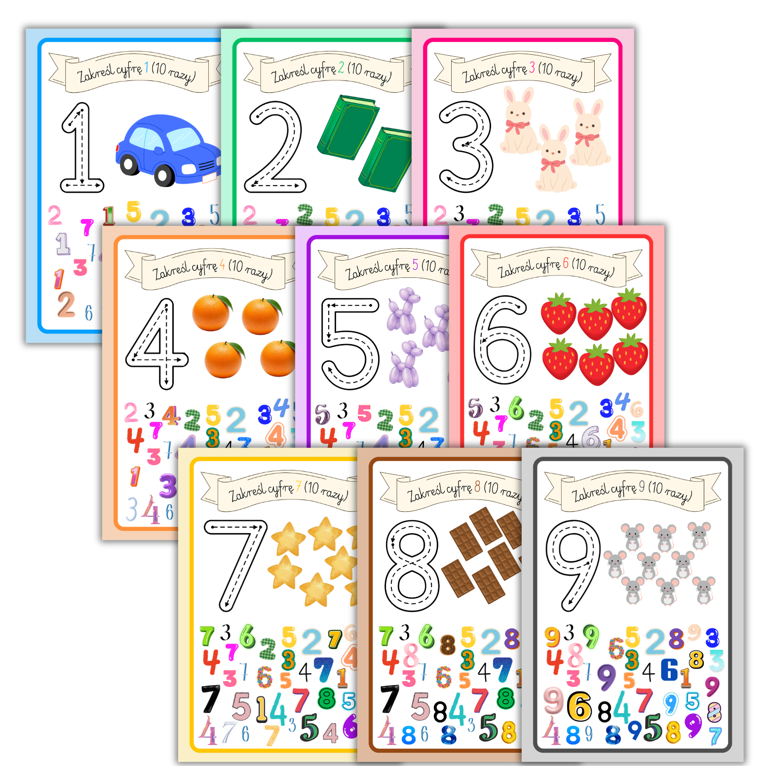 Komplet kart pracy dla każdej liczby z zakresu 1-9.