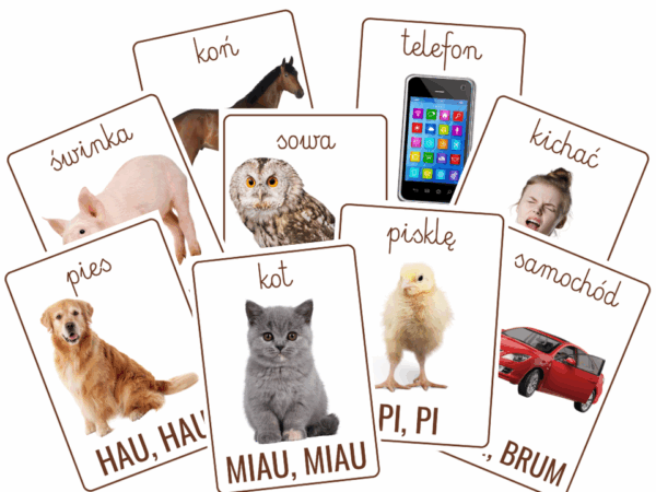 Odkryj świat dźwięków razem z Twoim dzieckiem! Nasz zestaw pięknie zaprojektowanych kart edukacyjnych to idealne narzędzie do nauki wyrazów dźwiękonaśladowczych w sposób angażujący i pełen radości.